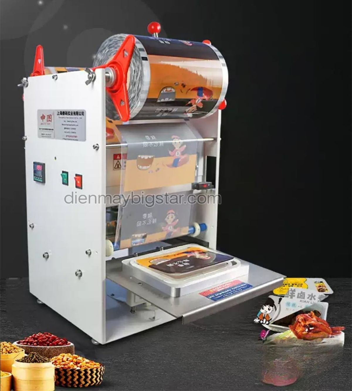 Máy dán miệng hộp là thiết bị chuyên dụng được thiết kế để niêm phong các loại hộp, khay đựng thực phẩm bằng màng nhựa hoặc màng nhôm. Thiết bị này rất quan trọng trong việc bảo quản thực phẩm, ngăn ẩm mốc, rò rỉ, đảm bảo an toàn vệ sinh cho sản phẩm khi đóng gói.