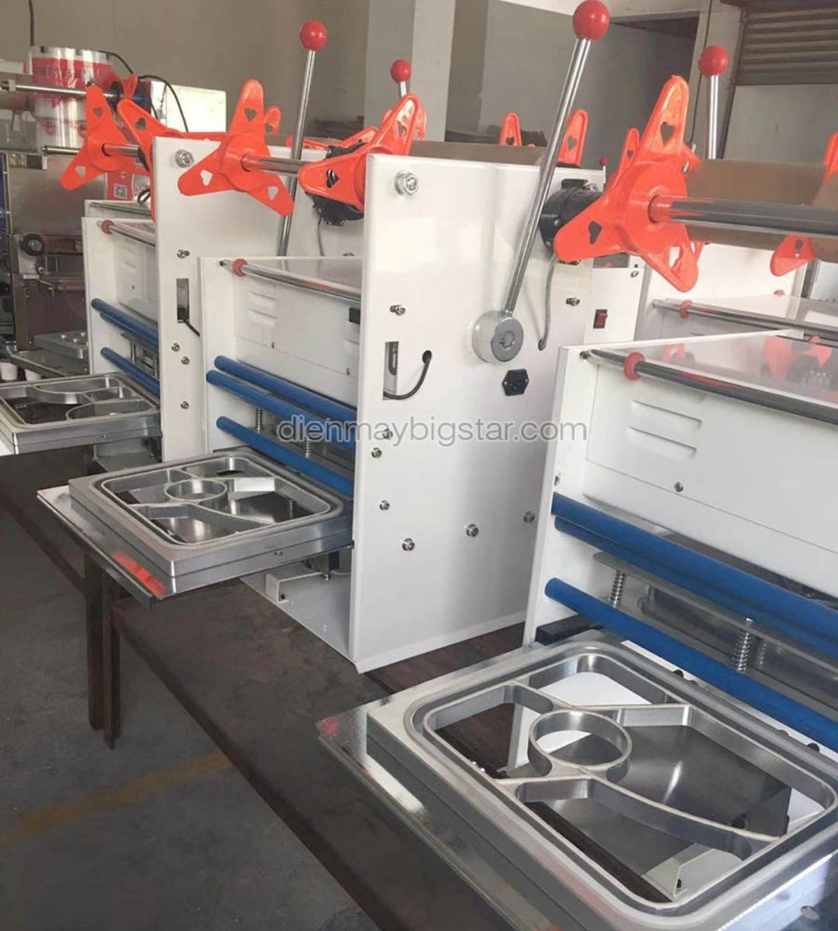Máy dán miệng hộp dập tay để bàn là dòng máy nhỏ gọn, vận hành bằng thao tác thủ công (dập tay) để ép kín màng lên miệng các khay/hộp nhựa đựng thực phẩm. Thiết bị này phù hợp cho các hộ kinh doanh nhỏ, quán ăn mang đi, nơi đóng gói tiện lợi và đảm bảo vệ sinh thực phẩm.