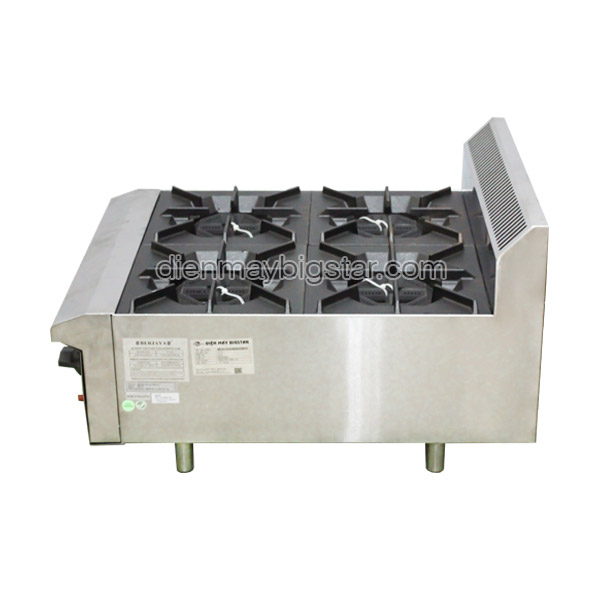 + 4 họng bếp đều nhau và cho ngọn lửa lớn, xanh đều. Cấu tạo của bếp giúp khách hàng tiết kiệm nhiên liệu đáng kể. Bếp với 4 họng đốt đều được làm bằng gang. 4 họng gang này có thể tháo rời và vệ sinh lớp dầu mỡ sau khi sử dụng.
