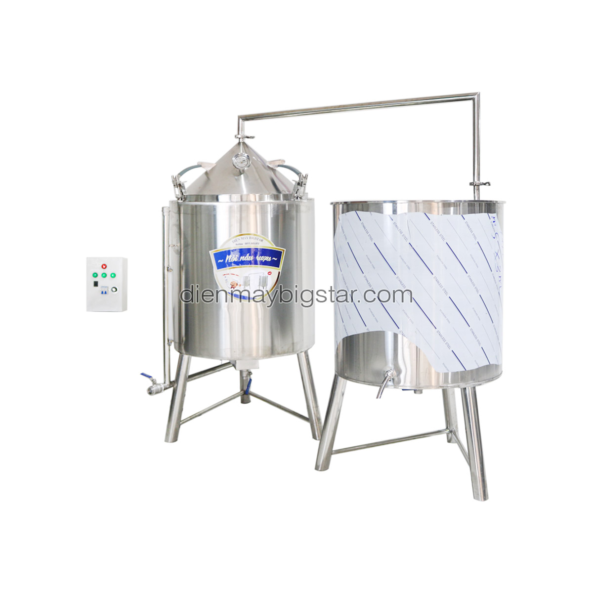 Bộ nồi nấu rượu 30kg bằng INOX được trực tiếp gia công sản xuất tại xưởng BigStar. Thiết bị mang đến cho khách hàng quy trình chưng cất rượu sạch, hoàn toàn tự động, đáp ứng đầy đủ nhu cầu sử dụng của các cơ sở sản xuất có quy mô vừa và nhỏ. Sản phẩm ra đời nhằm thay thế hoàn toàn các phương pháp nấu rượu truyền thống trước đây, mang lại hiệu quả cao hơn gấp nhiều lần.