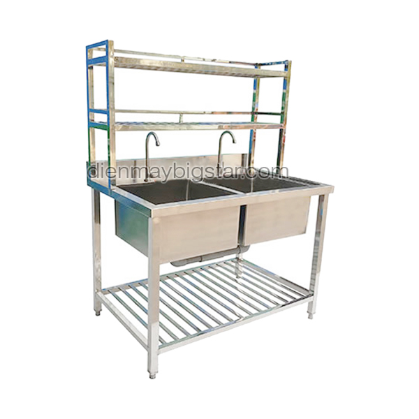 Chậu rửa inox đôi kệ 2 tầng inox 304