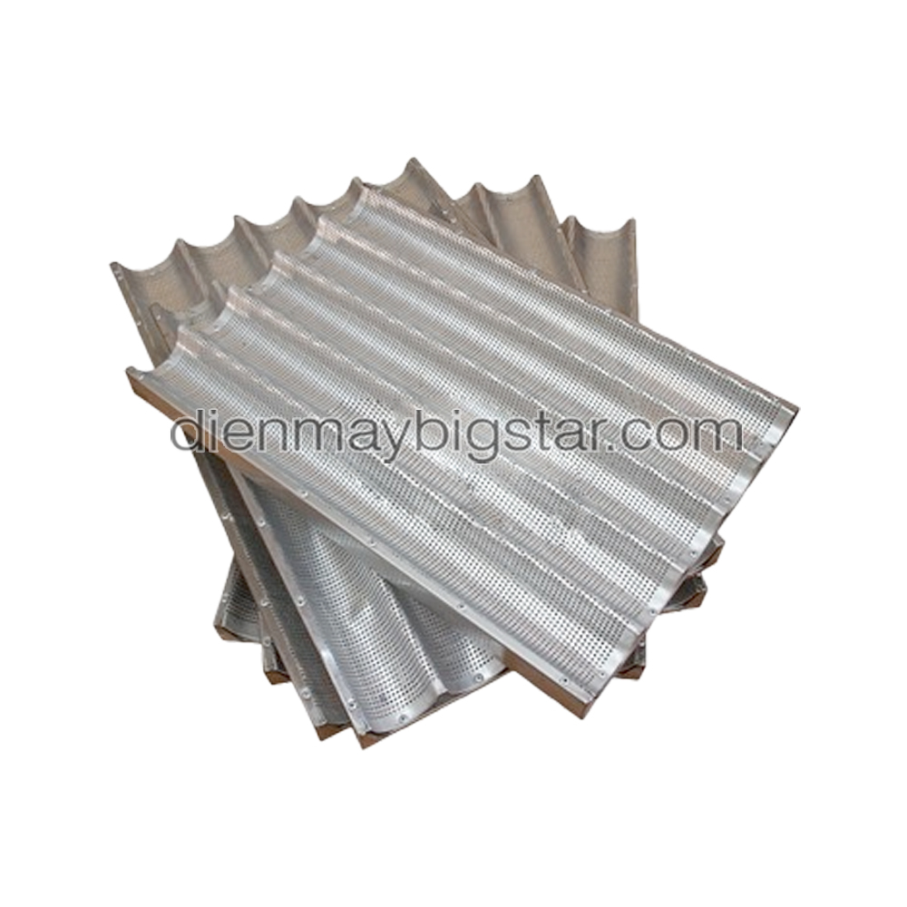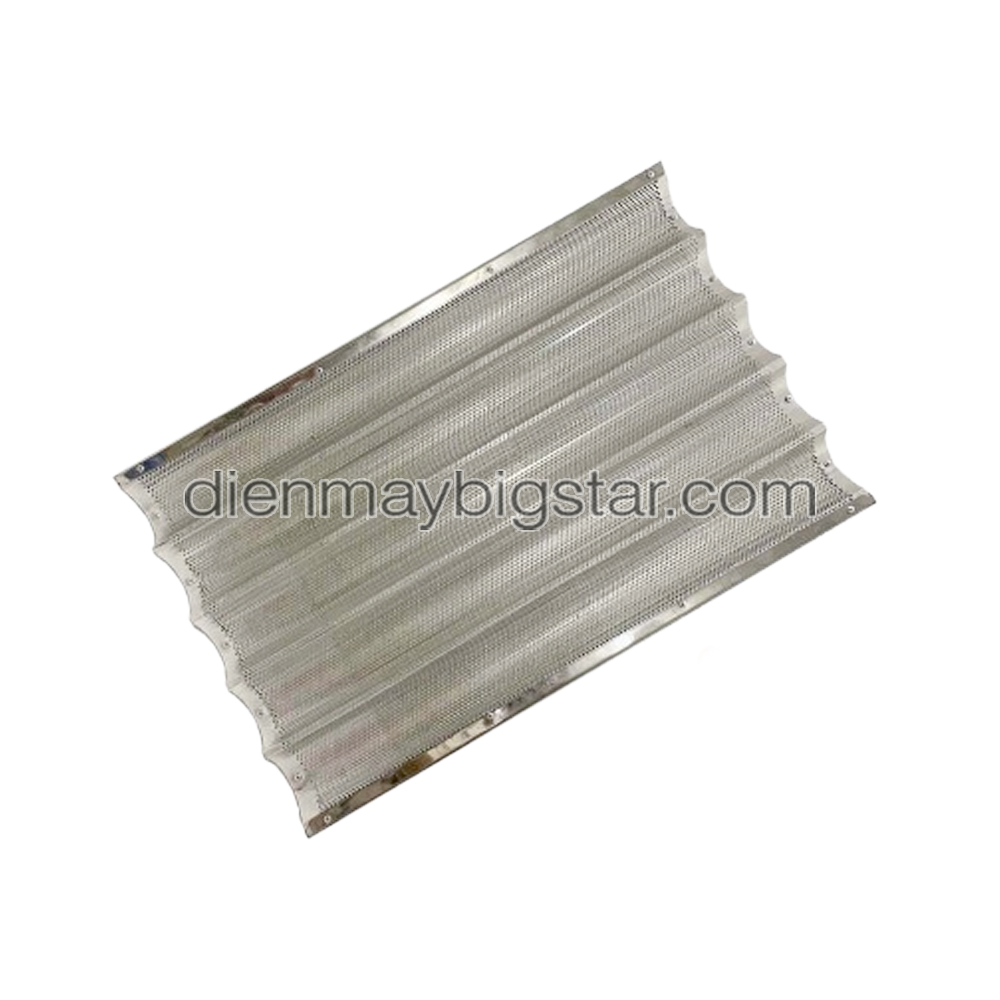 Khay sóng dùng nướng bánh mì là sản phẩm được thiết kế với các rãnh rộng có kích thước đều nhau. Loại khay này có công dụng chính là đặt trong lò nướng các mẻ bánh mì.