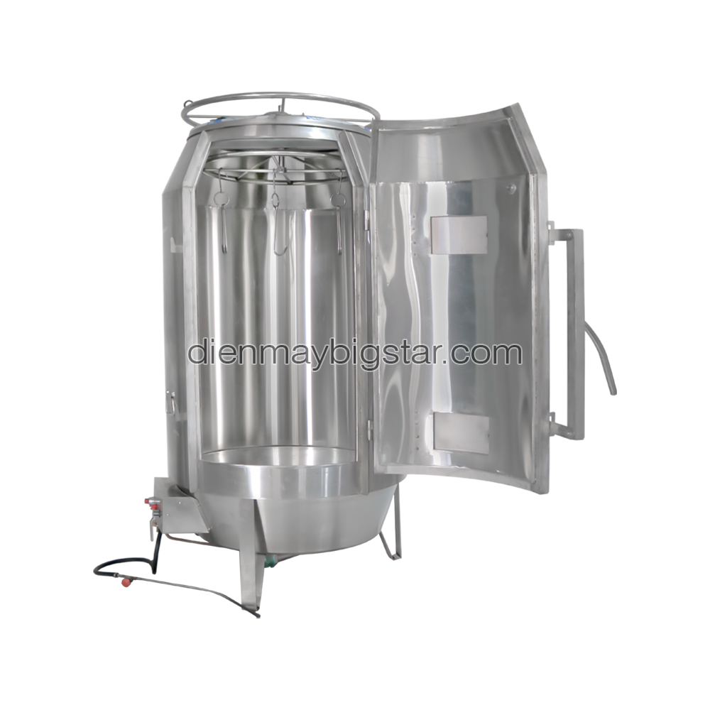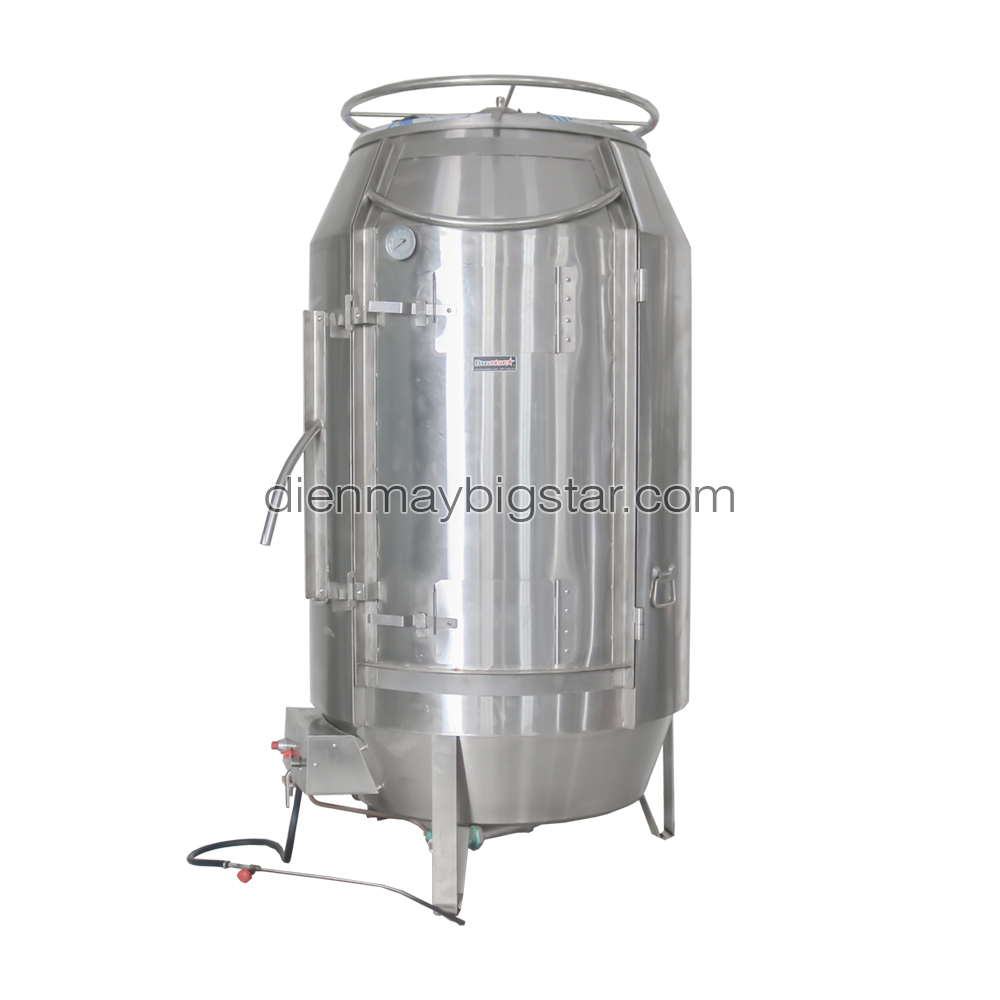 Trước đây, các nhà hàng, quán ăn, thường sử dụng loại lò quay xích lộ thiên để quay heo nguyên cao. Nhưng loại lò quay than ngoài trời này lại có nhược điểm là sản sinh ra rất nhiều khói và tiềm ẩn nhiều nguy hại cho sức khoẻ. Chưa kể, lò quay dây xích thường chỉ có thể quay được 1 con lợn cỡ trung bình. Do đó, việc sử dụng lò quay heo nguyên con dùng gas của Điện máy BigStar là giải pháp hiệu quả nhất, để quay heo nguyên con từ 60 ~ 70kg nhanh chóng, tiện lợi và đảm bảo không thải khói bụi độc hại ra môi trường.