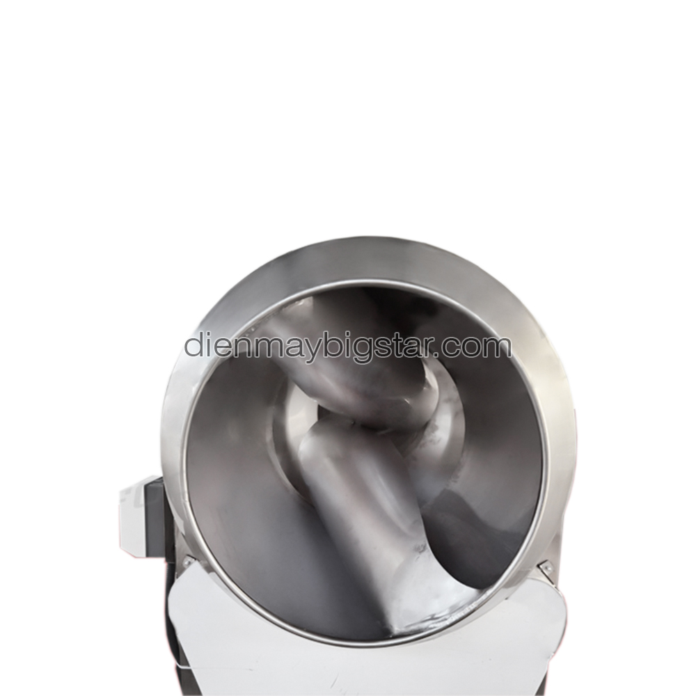 + Phễu nạp nguyên liệu nằm ở đầu máy, dạng phễu tròn miệng rộng, thiết kế nghiêng giúp nguyên liệu dễ dàng trượt vào khoang lưới quay. Với chất liệu inox 304 giúp hạn chế bám dính, đồng thời đảm bảo vệ sinh an toàn thực phẩm.