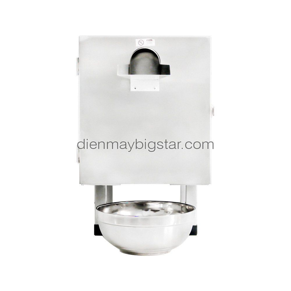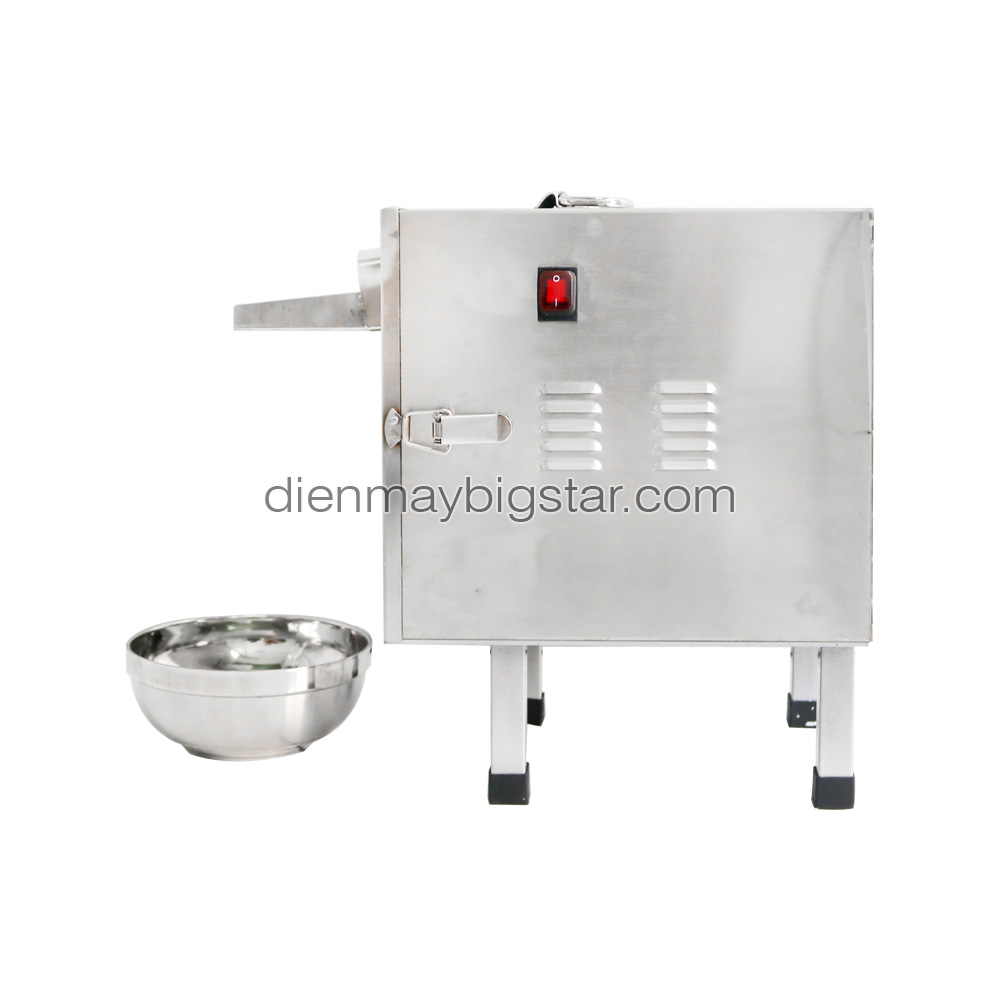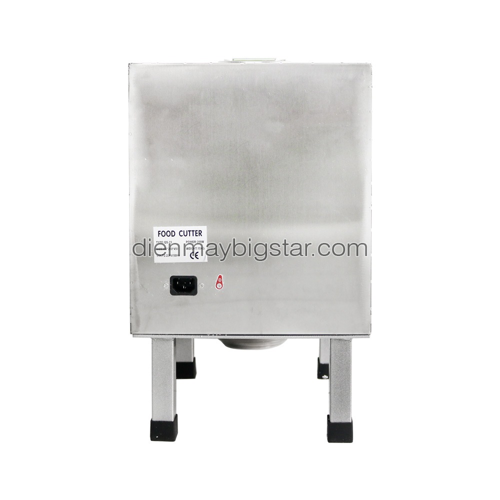 Mặt trước máy là hộc cho nguyên liệu, đây là vị trí ta sẽ cho hành, khoai tây, dưa chuột, … vào để thực hiện công cuộc thái nhỏ.