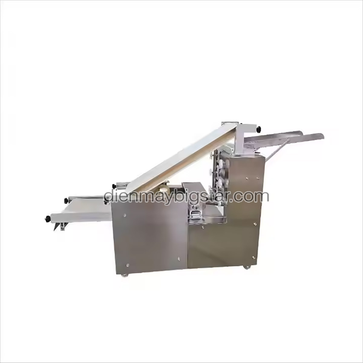 - 6 con lăn màu trắng bên hông máy có công dụng là điều chỉnh đồ dày bánh, tạo lực ép lên bánh và cho ra lớp vỏ bánh có độ dày đồng đều, hoàn hảo.
