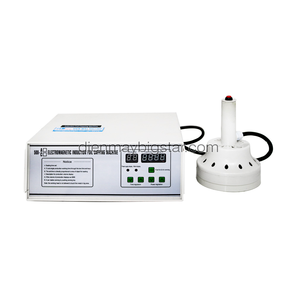 Máy dán màng seal nhôm YDGF-500C hoạt động dựa trên nguyên lý cảm ứng điện từ. Màng nhôm đã được đặt sẵn trên hũ sau khi đi qua điện từ trường của máy dán màng, dòng điện cảm ứng sinh ra trên màng nhôm làm cho màng nhôm nóng lên nhanh chóng. Khi đó, lớp dính đã phủ sẵn trên màng nhôm nóng chảy và dính chặt vào miệng hũ.