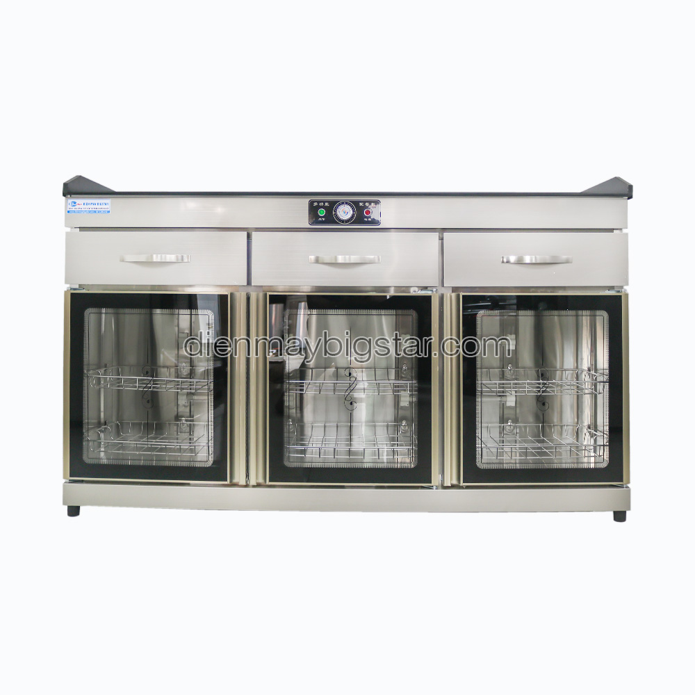 Hiểu được vấn đề đó, Điện máy BigStar xin giới thiệu đến khách hàng mẫu máy sấy chén bát 3 cửa 3 hộc chống vân tay 1500mm. Sản phẩm không chỉ giúp bạn sấy khô chén bát nhanh chóng mà còn tiệt trùng, diệt khuẩn bằng công nghệ sấy ozone hiện đại. Chỉ cần đặt chén vào máy sấy và đợi trong vài phút là bạn sẽ có ngay những mẻ chén bát sạch bóng, thơm tho, đảm bảo an toàn cho sức khỏe. Đây là sự lựa chọn hoàn hảo cho các quán ăn, nhà hàng, khách sạn,… giúp nâng cao tính chuyên nghiệp cho cơ sở kinh doanh.