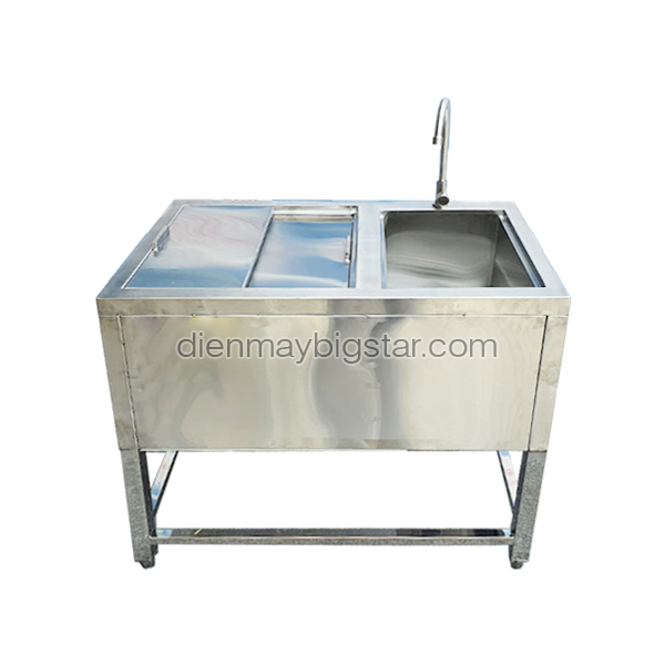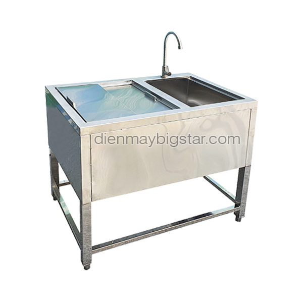 Chậu rửa được tích hợp bên cạnh thùng đá giúp tiết kiệm diện tích và thuận tiện cho việc rửa chén, rửa thực phẩm hay rửa tay. Chậu rửa dũng làm từ chất liệu inox 304 nên có tuổi thọ sử dụng cao, chống bị oxy hoá. Bề mặt chậu sáng bóng, dễ vệ sinh, đáp ứng các tiêu chuẩn an toàn vệ sinh thực phẩm.