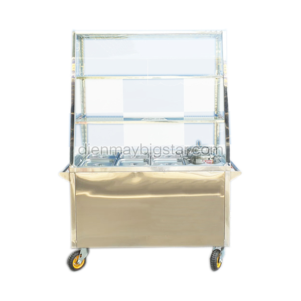 Tủ giữ nóng thức ăn 6 khay và 2 nồi được thiết kế và sản xuất bởi Điện máy BigStar, mang đến giải pháp tiện lợi cho các quán cơm, bếp ăn công nghiệp,… ngày nay, giúp các món ăn luôn được bảo quản nóng hổi, thơm ngon nhất trong quá trình buôn bán cả ngày. Với nguyên lý hâm nóng cách thủy cùng thiết kế cách nhiệt, giữ nhiệt tốt, sử dụng thiết bị bạn không cần phải hâm đi hâm lại nhiều lần, không lo món ăn bị nhừ nát, biến đổi chất, đảm bảo an toàn cho sức khỏe. Từ đó, nâng cao tính chuyên nghiệp cho cơ sở kinh doanh.