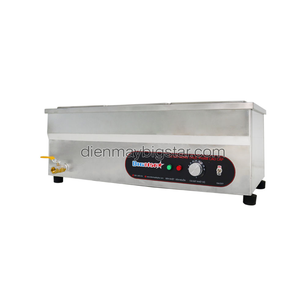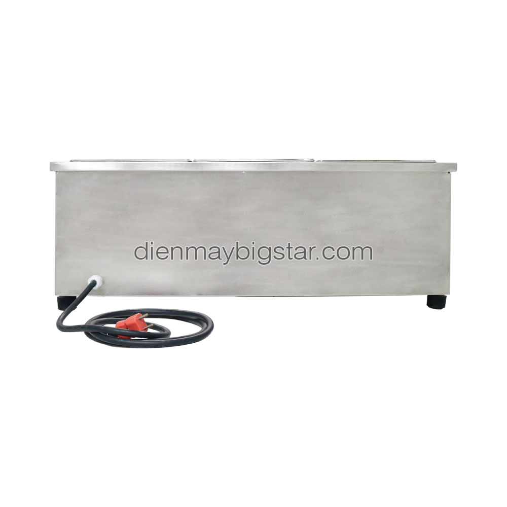 👉 Tủ hoạt động bằng điện trở kết hợp với nước để tạo hơi nóng. Khi cấp điện, thanh nhiệt sẽ làm nóng nước trong khoang, tạo hơi nóng lan tỏa đều lên các khay. Nhờ cơ chế này, thức ăn được giữ nóng liên tục mà không bị cháy khét hay mất nước.