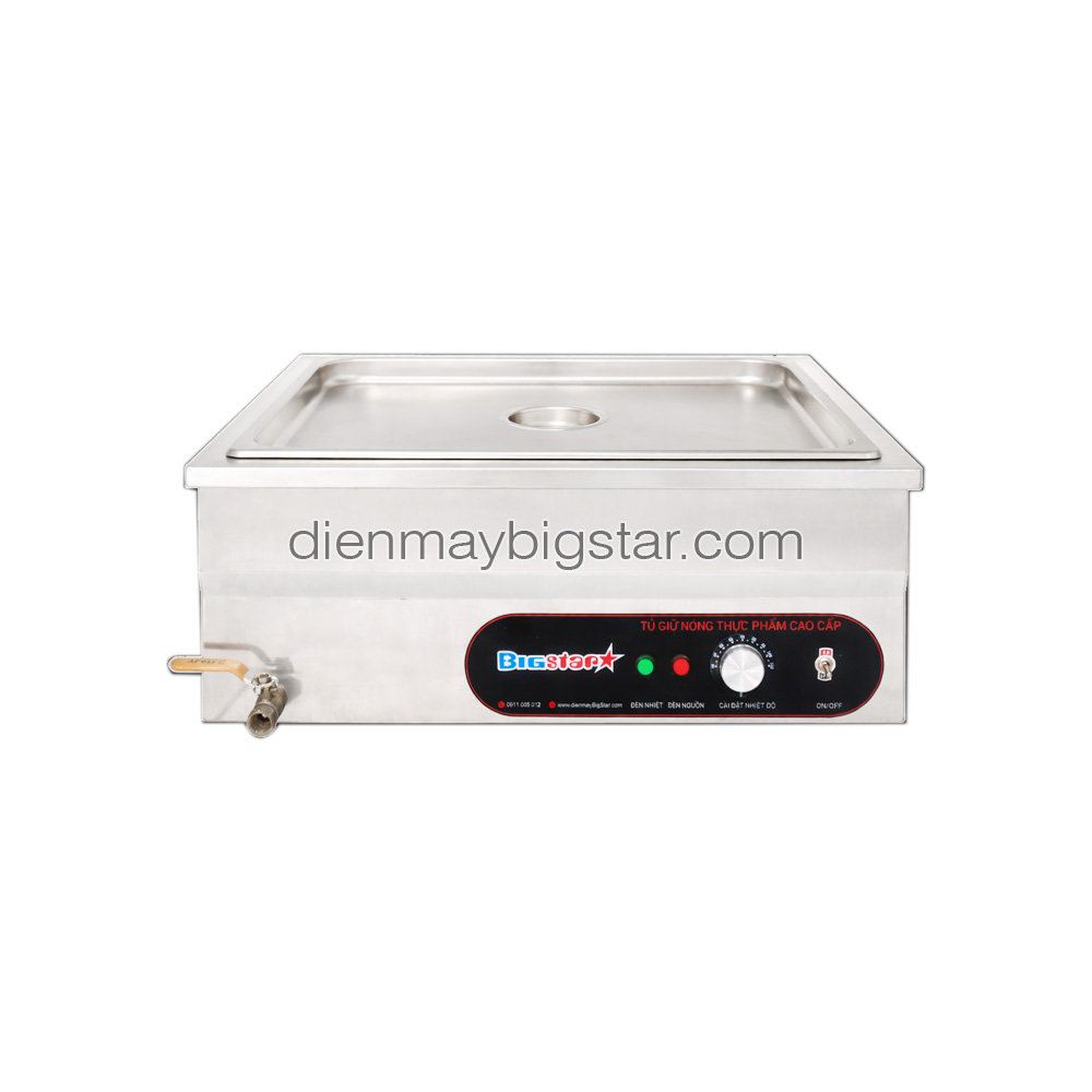 Tủ hoạt động theo nguyên lý gia nhiệt bằng nước, giúp nhiệt độ phân bố đồng đều khắp các khay, giữ cho thực phẩm không bị khô mặt hay cháy đáy, phù hợp với các món ăn như canh, súp, món xào, kho, sốt,…
